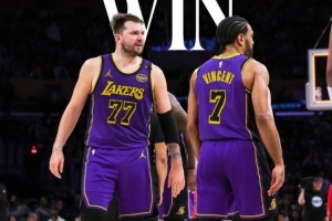 赛后,湖人官方晒出赢球海报,东契奇和文森特荣登封面。