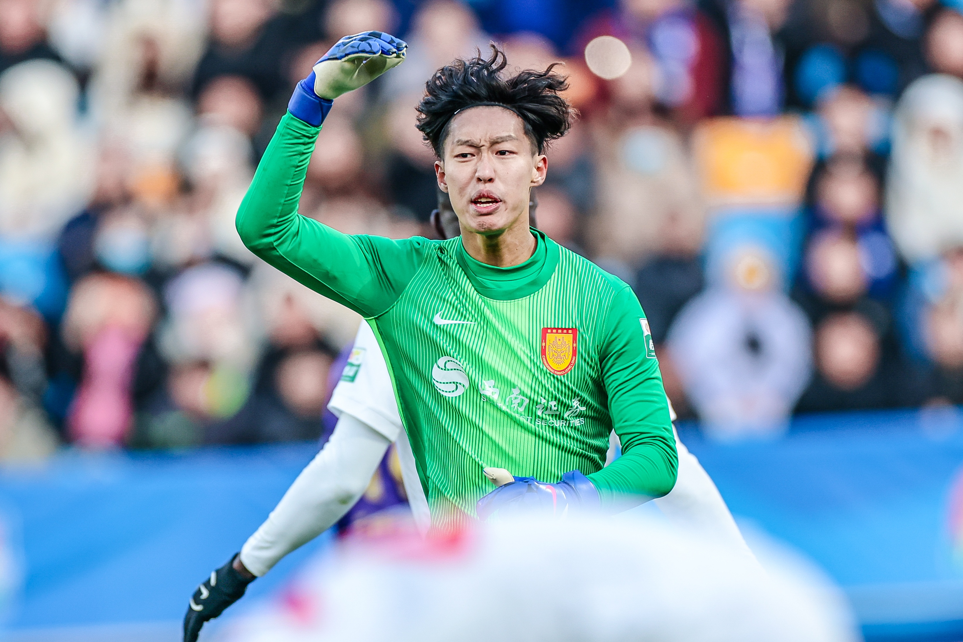 我的目标是从中超踢到国家队。毕竟之前踢的是中乙、中甲,我还需要积累中超的经验。至于技术方面,我年龄小,很多东西需要多练、多学、多看比赛,向一些优秀的守门员学习,比如王大雷和颜骏凌。雷哥是我的校友,他在场上就像一名指挥官,而颜哥的优点就是稳重。
